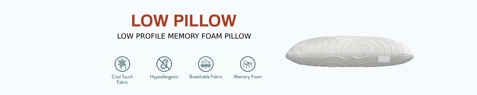 Our Low profile pillow keeps you comfortable all night long. Made with silky fibers blended with memory foam and featuring a super soft breathable cover with innovative cooling technology and a removable 2 inch high density memory foam insert.